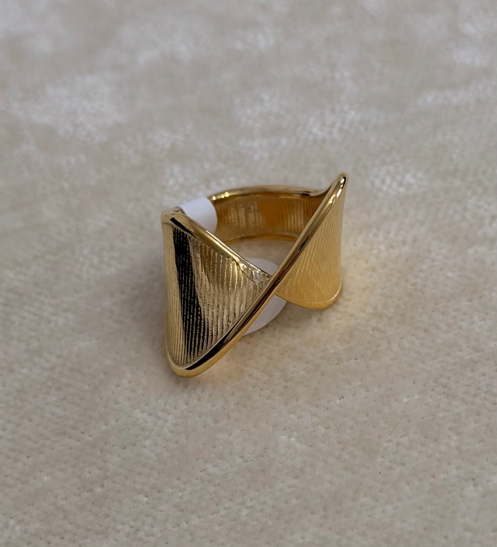 Sortija tamaño 6 en acero inoxidable con baño en oro.